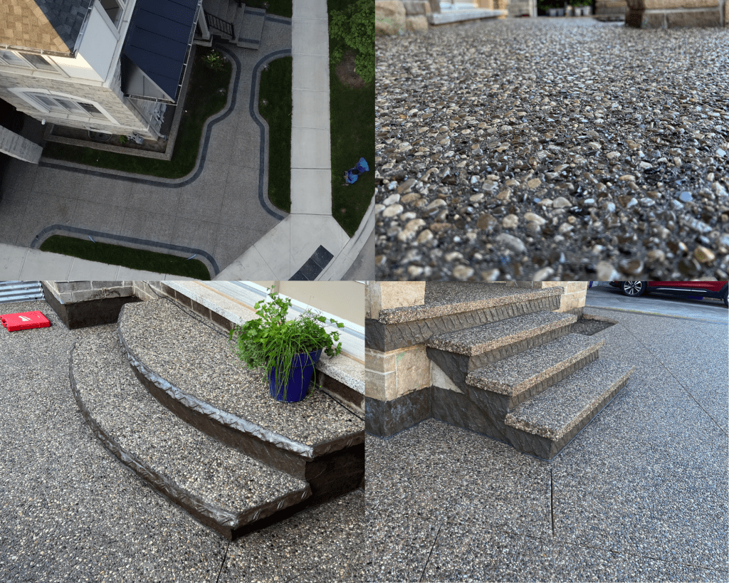 Exposed aggregate concrete is a decorative style of concrete that reveals the textured and visually appealing aggregate materials within the mixture. By removing the top layer of cement paste, the underlying aggregate is exposed, creating a durable and skid-resistant surface. This style offers a wide range of decorative possibilities, including various colors and aggregate types, making it a popular choice for outdoor areas such as driveways, patios, and pool decks.